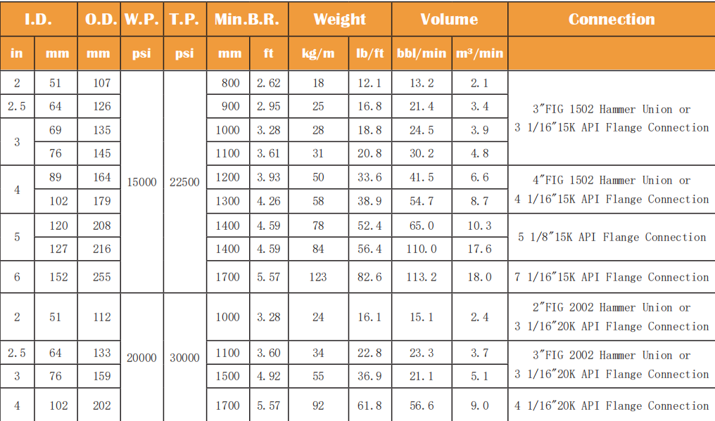 Application: Used for quick connection between fracturing wellheadand manifold skid, fracturing truck and high and low pressuremanifold, injecting fluid containing acid liquid or fracturing sandinto the well at high flow rate to cause cracks in the oil layer rock andsupport fractures open, releasing deep oil and natural gas.